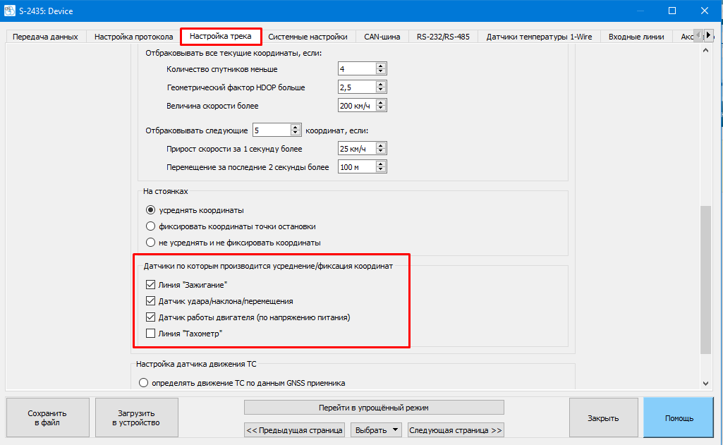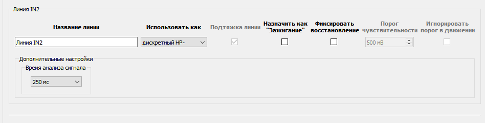 настроить сработку сигнала зажигания на вкладке Входные линии