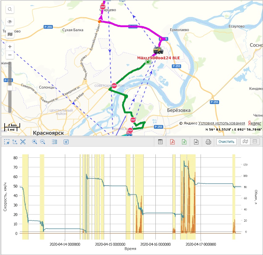 Прибор перестает отправлять на сервер данные. А спустя сутки присылает всю историю перемещений.
