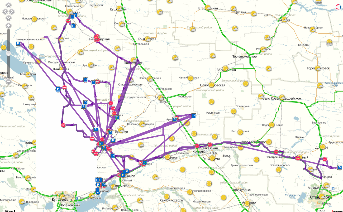 Обратился клиент с просьбой прокомментировать: по показаниям системы мониторинга бензовоз (не оборудованный датчиками, только мониторинг, к сожалению), после посещения топливораздающего узла, встал на обочине в 200 метрах и стоял 3 часа с заведенным двигателем. После этого поехал по делам.